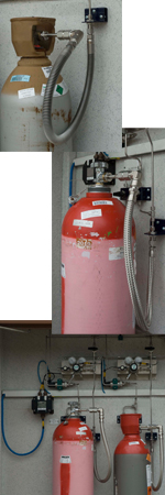 FLEXIBLE CYLINDER CONNECTIONS.SHOWN BEING USED WITH UHP He AND HYDROCARBON CALIBRATION AND TEST GAS CYLINDERS. |