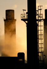 POWER AND LIGHT (THREE) SUNRISE AT CONNAH'S QUAY FLINTSHIRE, NORTH WALES. E-ON (POWERGEN) POWER STATION.